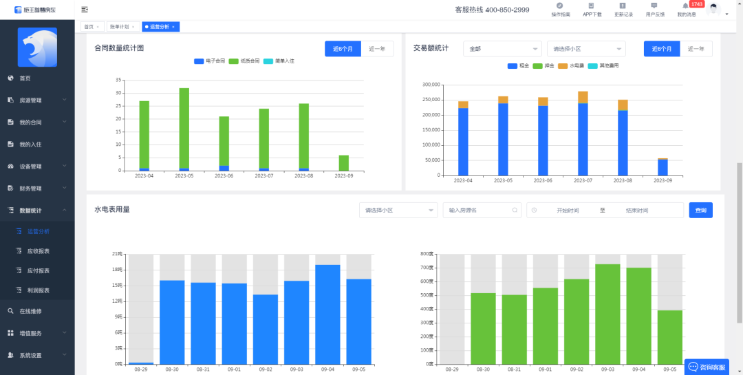 智慧房東軟件提供數(shù)據(jù)可視化分析功能,自動匯總經(jīng)營數(shù)據(jù)并形成報表,幫助管理人員更好地了解宿舍情況,為宿舍管理提供科學決策依據(jù)。